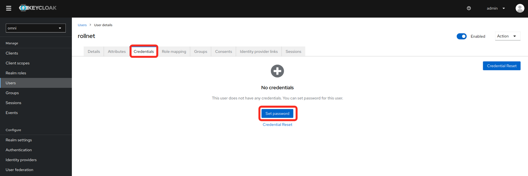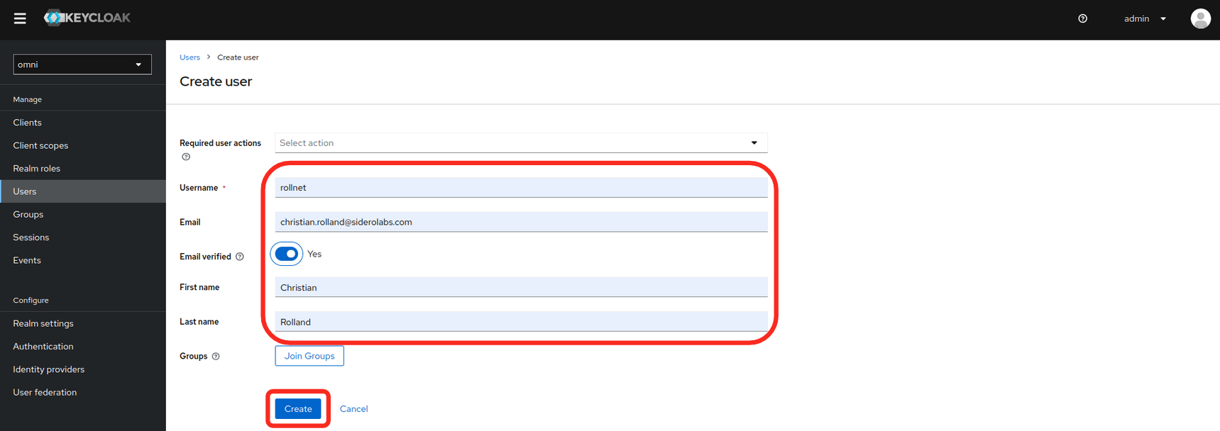 - If Keycloak is being used as an Identity Provider, users can be created here.