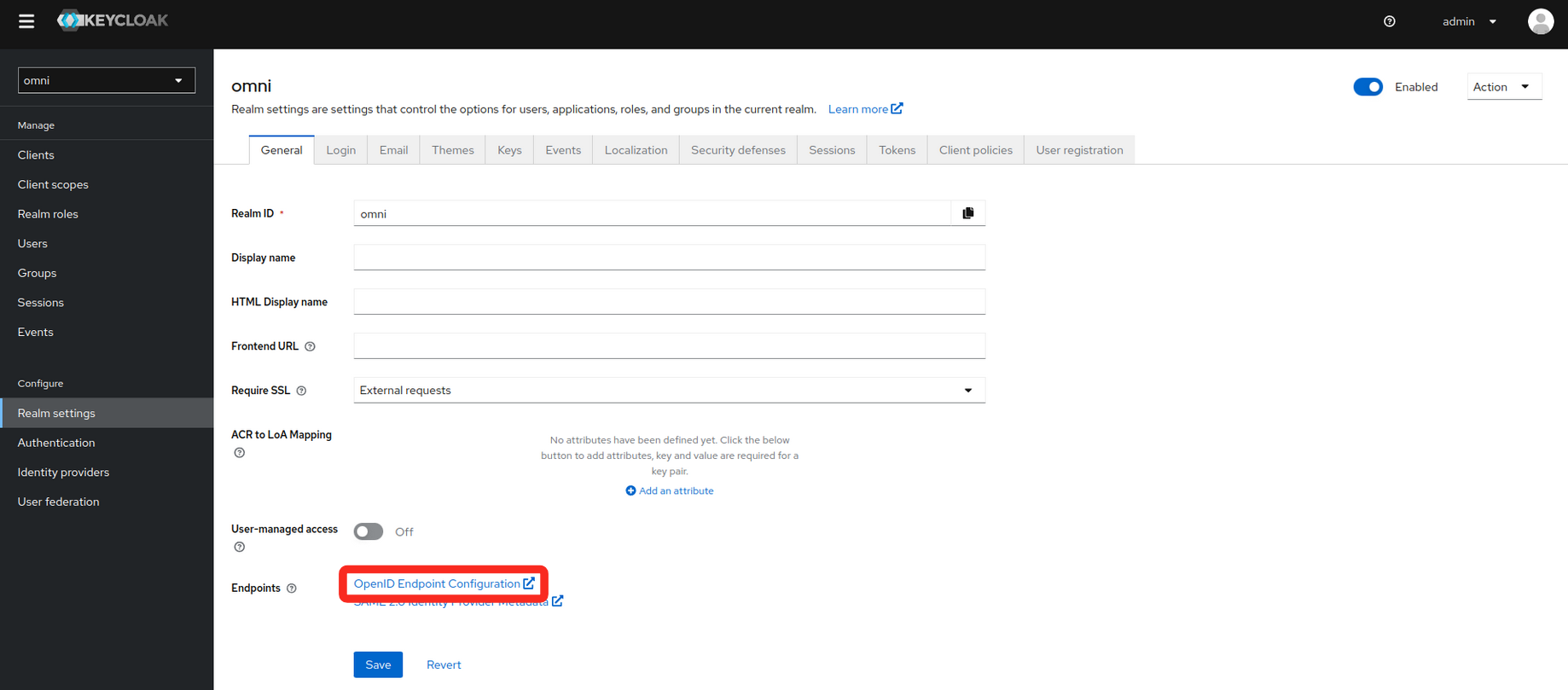 - In the realm settings, there is a link to the metadata needed for SAML under Endpoints.