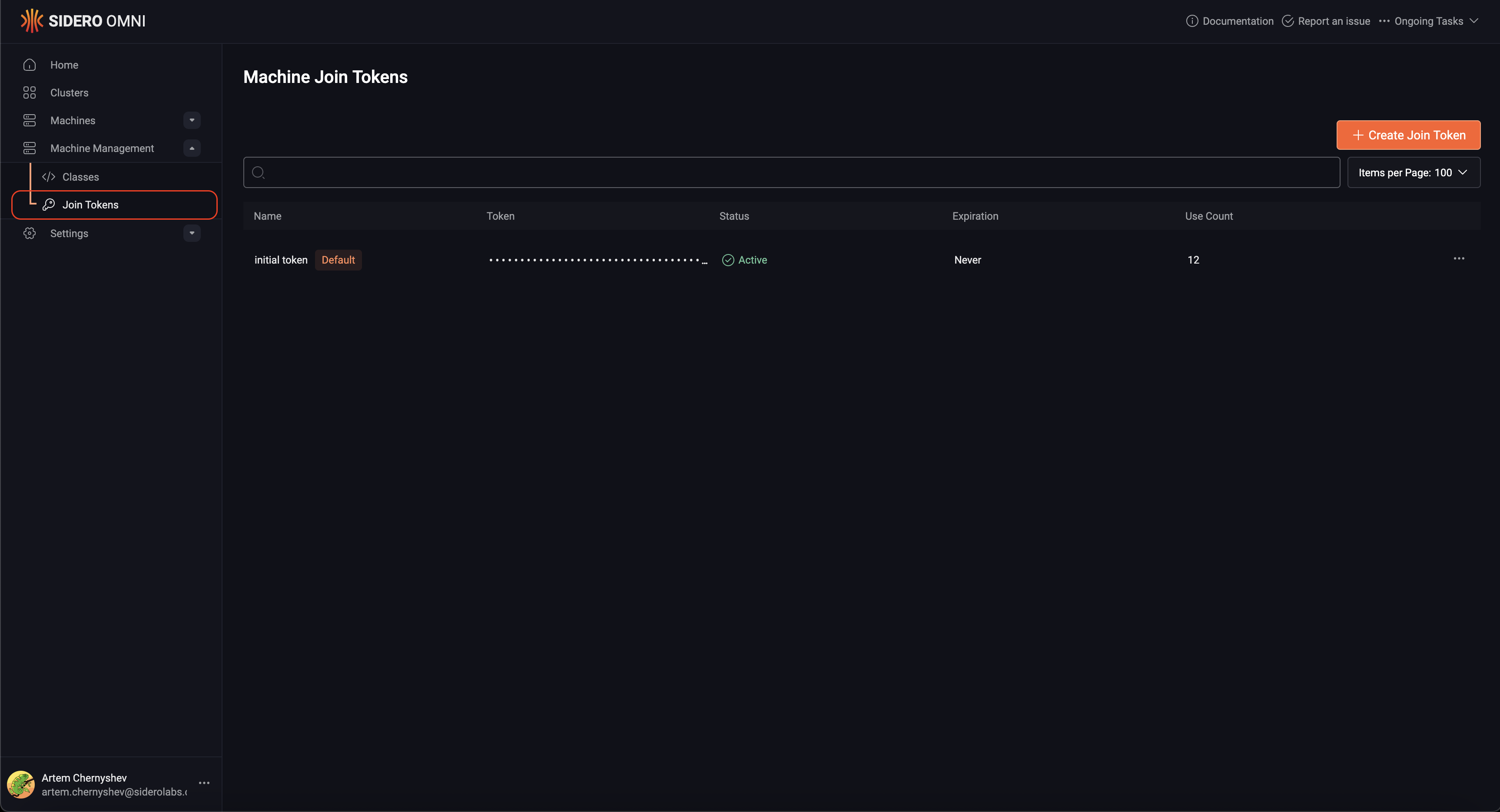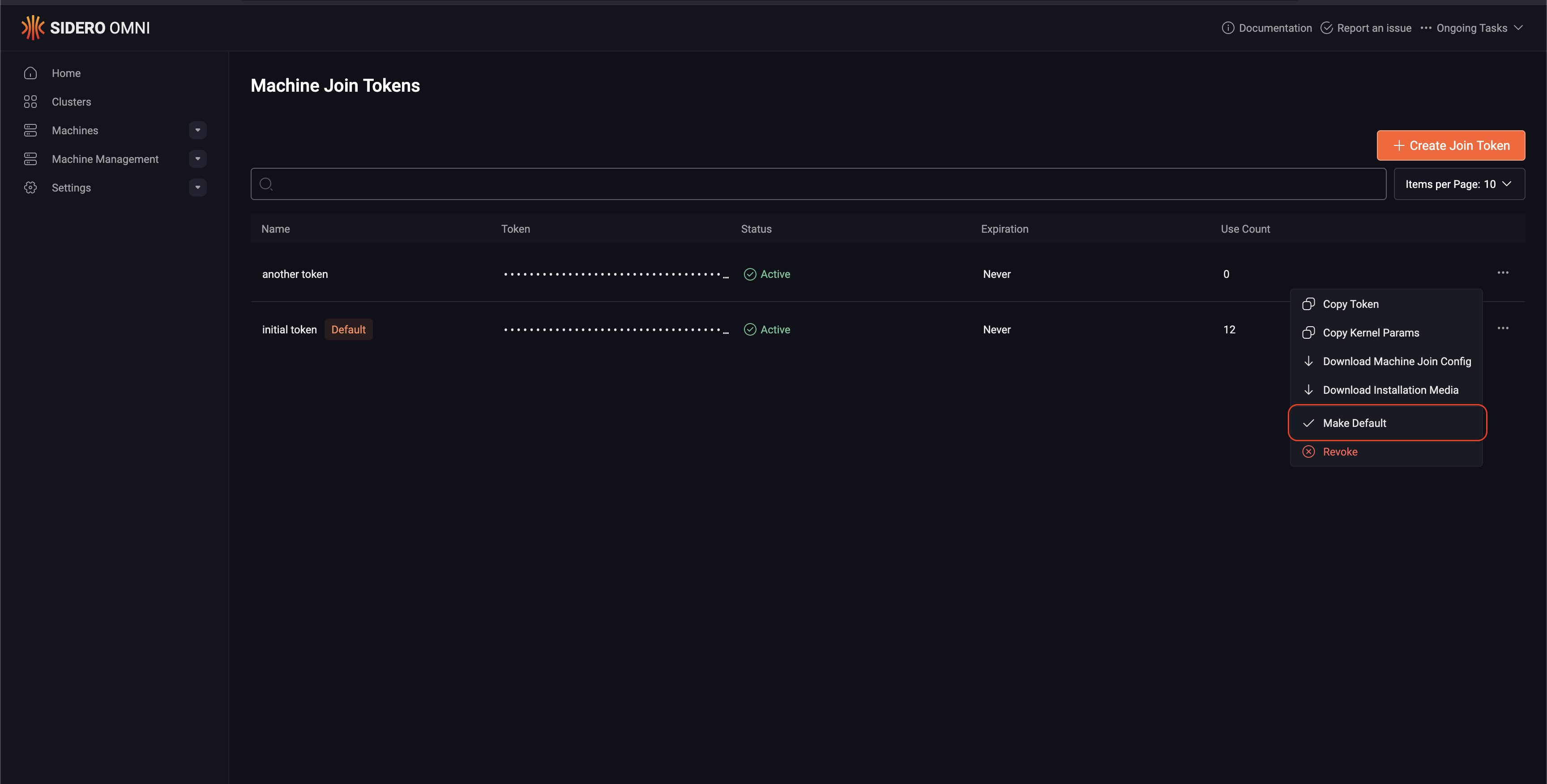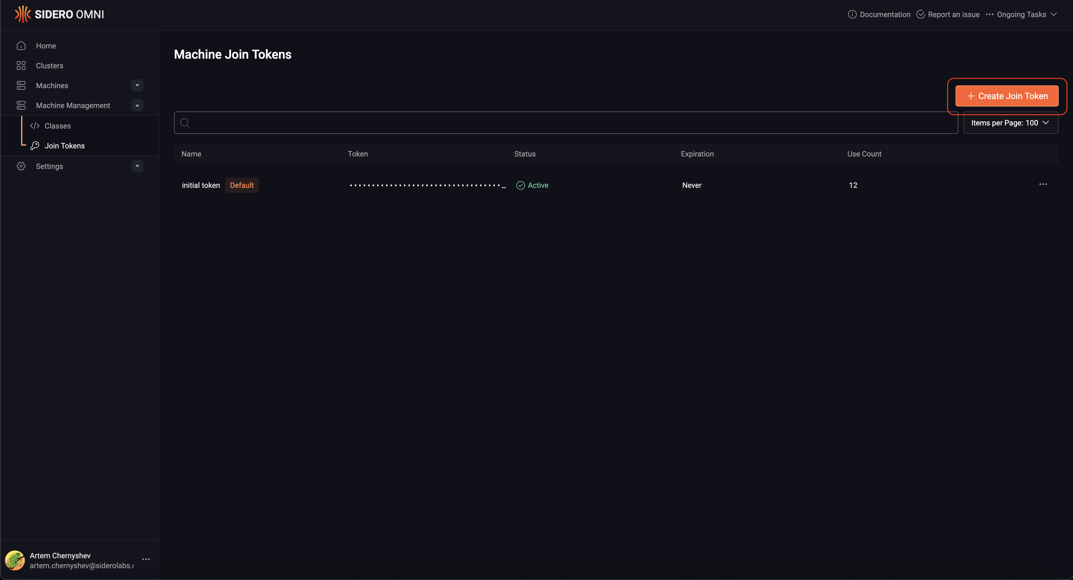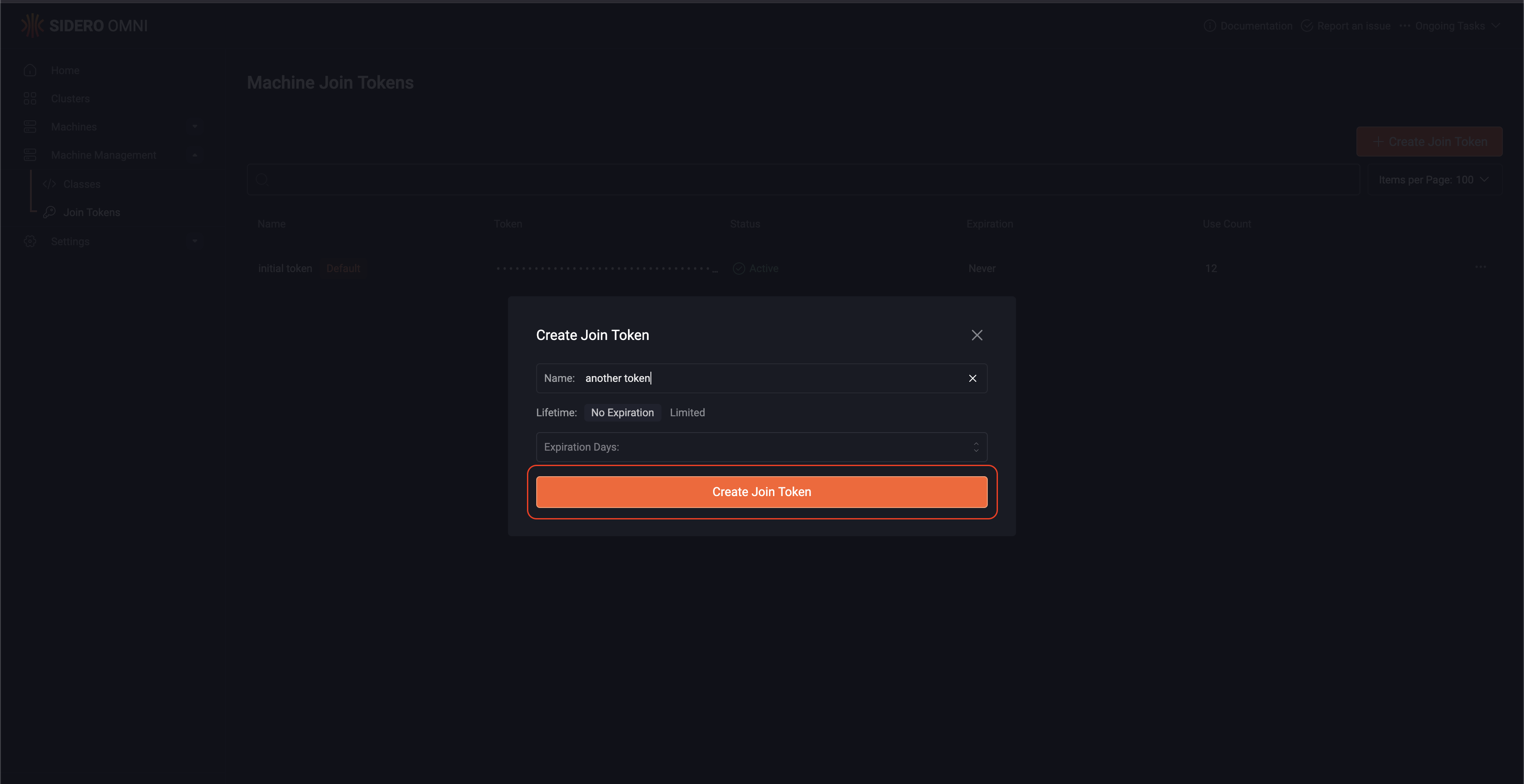 Click the âJoin Tokensâ section button under âMachine Managementâ in the sidebar. Next, click the âCreate Join Tokenâ button on the right.